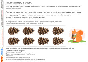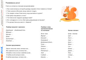 Задания построены вокруг сказочного сюжета: ребёнку предстоит помогать бельчонку решать примеры, подбирать противоположные слова, слушать внимательно, тренировать счёт, раскрашивать и дорисовывать картинки. Такой формат подходит как для совместных занятий с малышами 4–5 лет, так и для более самостоятельной работы детей 6–7 лет.