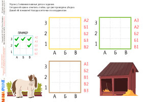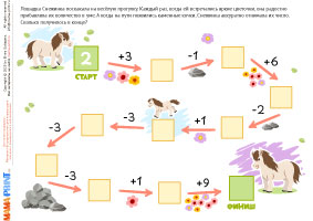 Тематическое занятие с лошадкой Снежинкой включает игровые задания на внимание, счёт, логику и пространственное мышление. Ребёнок знакомится с героем, выполняет задания по точкам, подписывает части тела, работает с координатной сеткой, решает примеры на сложение и вычитание, проходит математическую игру-ходилку.