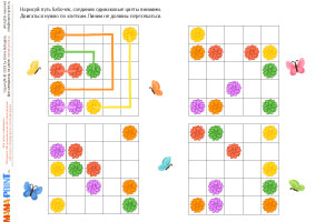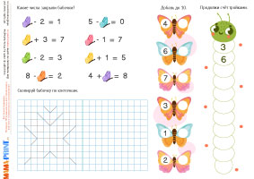 Упражнения помогают развивать счёт до 10, навыки сложения, логическое мышление, внимание, память и мелкую моторику через вырезание, соединение, копирование по клеточкам, дорисовывание и раскрашивание. Ребёнок выполняет задания дома, в детском саду или на занятиях: он соединяет элементы, считает, сравнивает, воспроизводит узоры по памяти, переносит фигуры в зеркальном отображении и работает с карточками для счёта — всё это поддерживает речевое развитие и пространственную ориентировку; указаны возраст 4–7 лет, 22 страницы и около 17 заданий.
