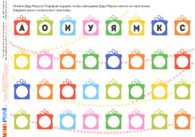 Комплект «Новогодние буквы» включает 7 страниц с играми и заданиями для изучения алфавита в зимне-праздничном оформлении. Дети закрепляют знание букв через игровые ситуации: находят буквы на снежинках, подписывают подарки, раскрашивают буквы своего имени и помогают Деду Морозу пройти по дорожке с буквами.
